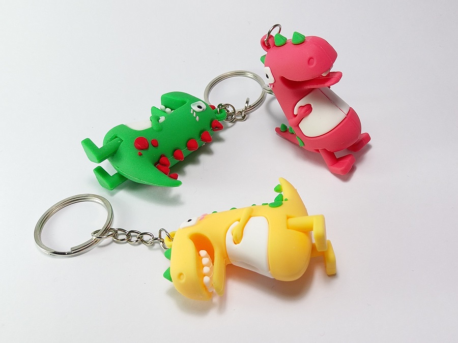 Napravljeni su od gume. Dinosaur je dimenzija 5 x 4 cm, ukupna dužina sa alkom je oko 11cm.