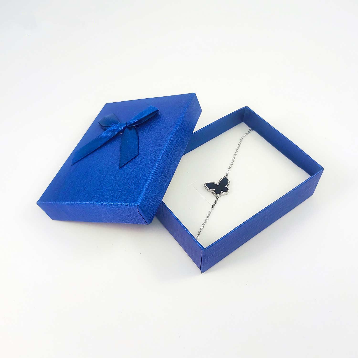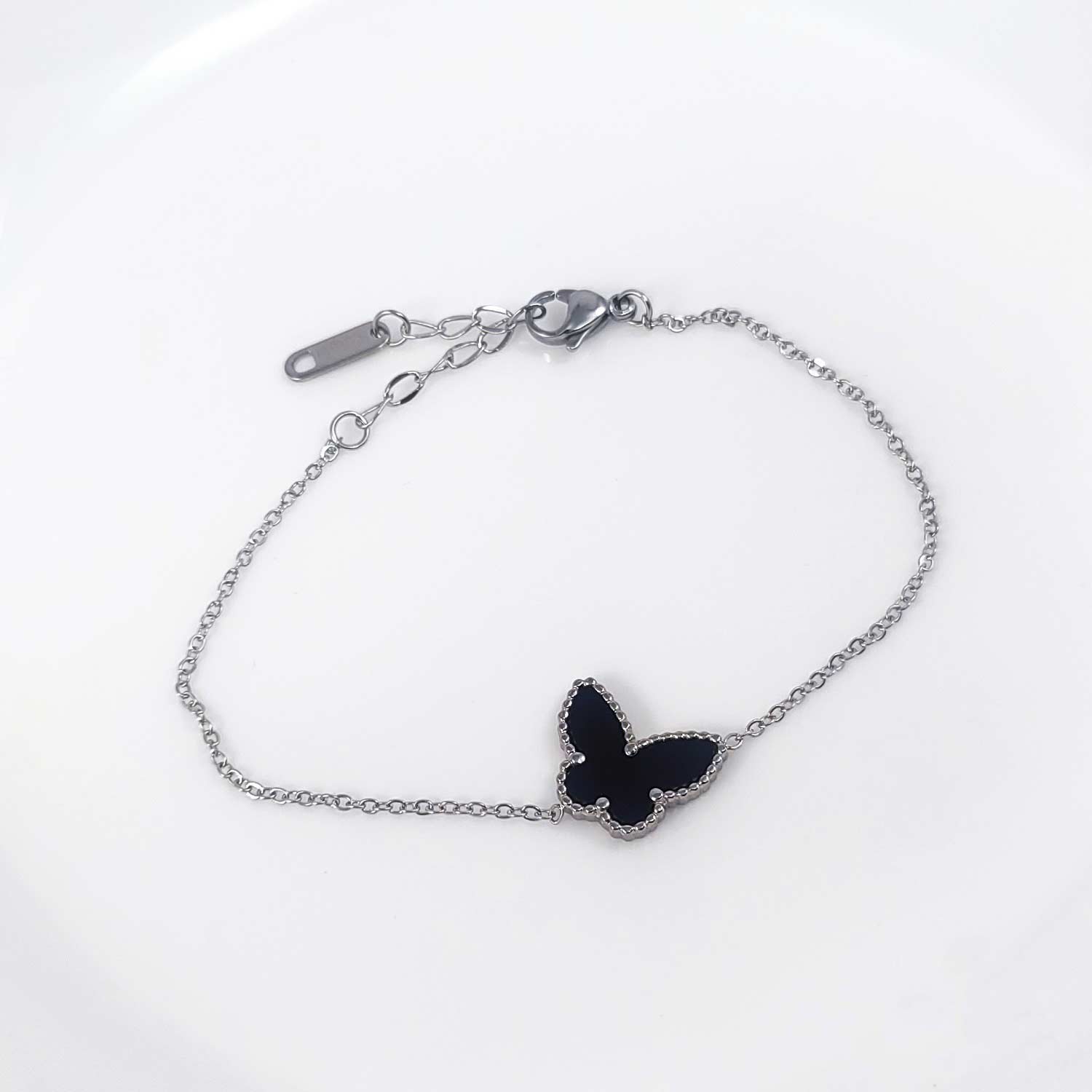 Prelepa ženska narukvica u sivoj boji sa leptirom u sredini. Dužina narukvice je 17.5 cm + 4 cm produžetak. Leptirić je dimenzija 16 x 13 mm. Na poklon dobijate i kutiju sa mašnom u nekoj od trenutno dostupnih boja.