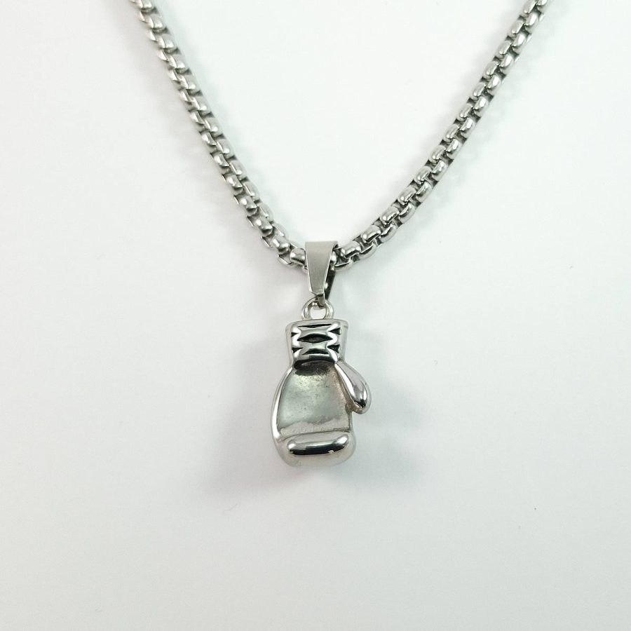 Ogrlica sa muškarce sa priveskom bokserska rukavica. Dostupne boje su siva i zlatna. Dimenzije priveska su 22 x 15 mm. Ogrlica je dužine 60 cm i po želji se može skratiti.