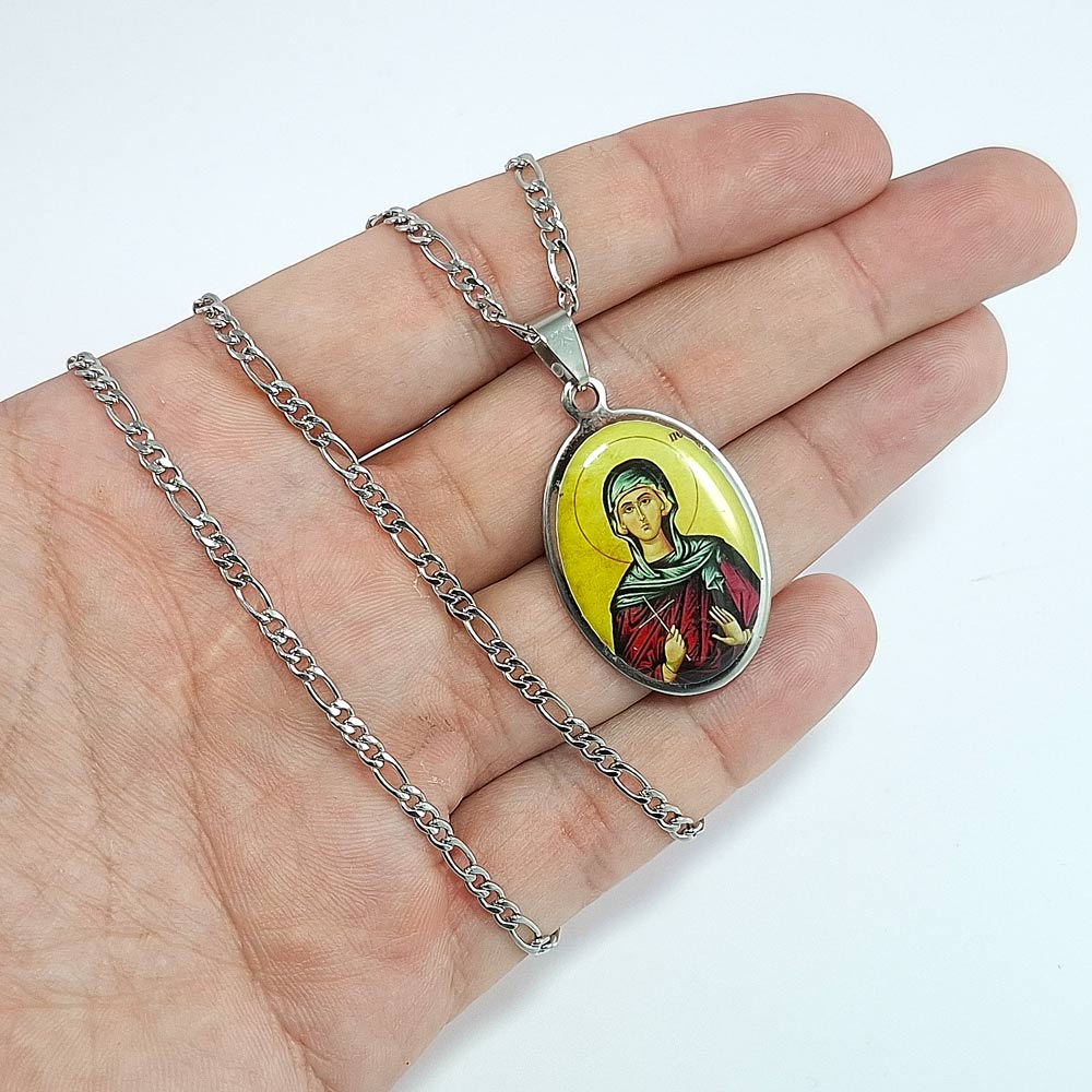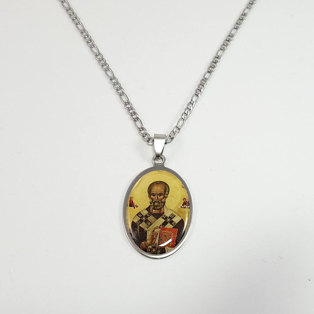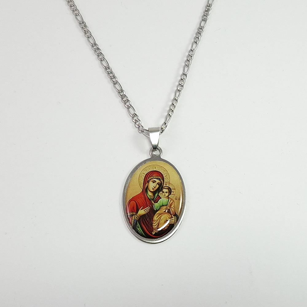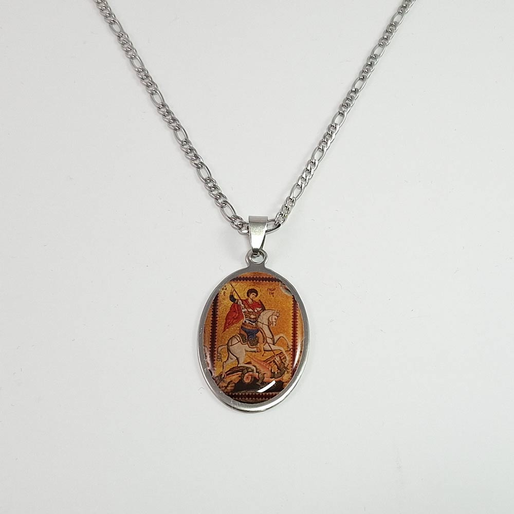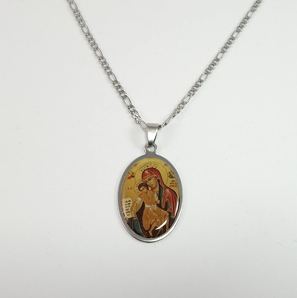 Jedan od najboljih izbora za poklon – klasičan pancir rad lančić sa pravoslavnim priveskom. Ogrlica je dugačka 60 cm dok je debljina svega 3 mm. Dimenzije priveska su 3.5 x 2.5 cm, trenutno dostupni modeli su prikazani na sajtu.