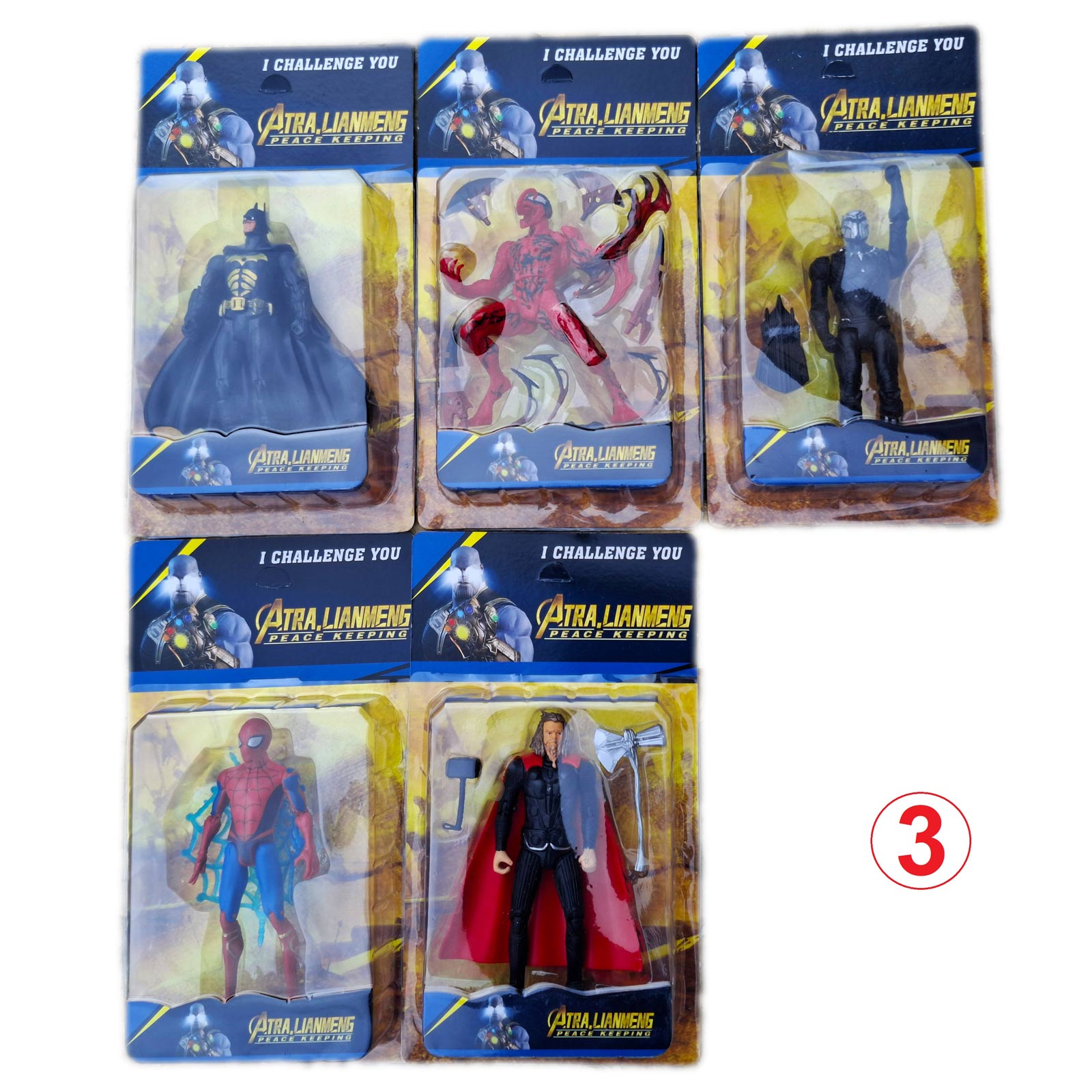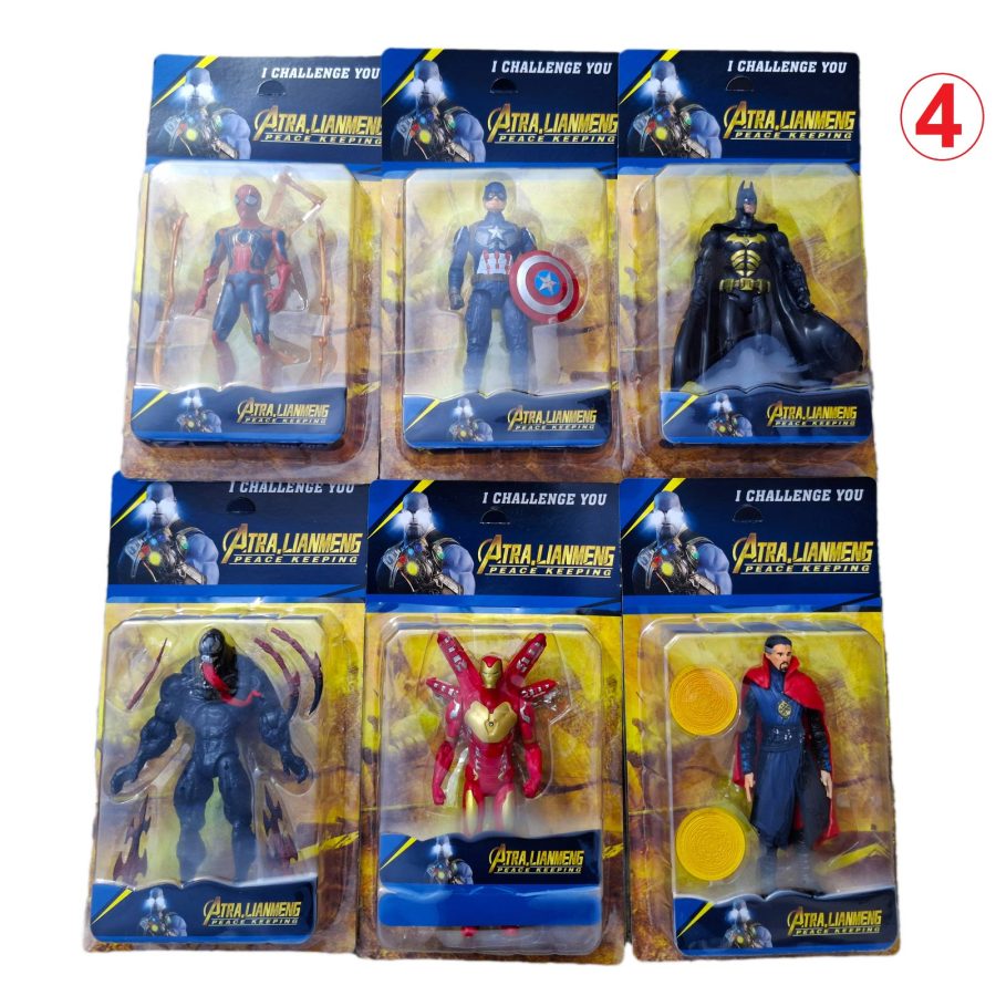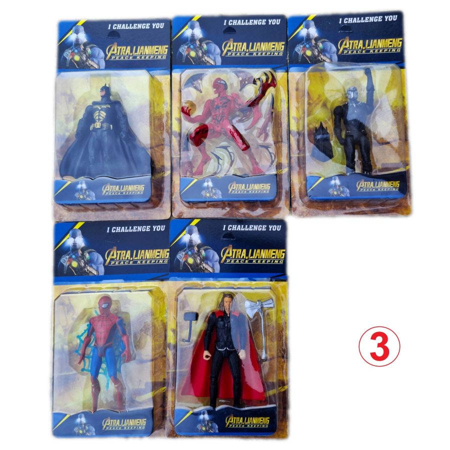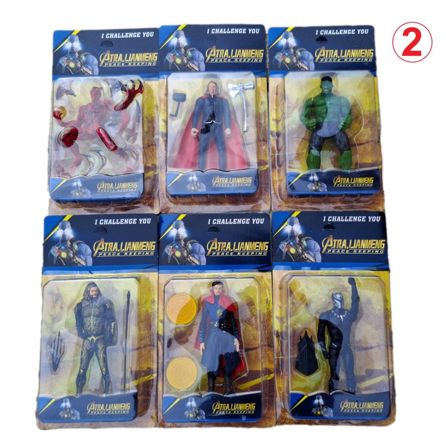 Figure sa likovima superjunaka u kompletima od 5 i 6 igračaka. Pritiskom na dugme na leđima igračke svetle, baterije su već ubačene. Zavisno od modela mogu im se pomerati ruke, noge i glava. Dimenzije variraju ali je prosečna igračka visine 17 cm.