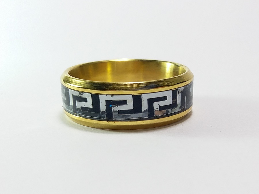 Verovatno najlepši prsten sa versace motivom, dostupan u sivoj i zlatnoj boji. Nažalost ovaj model ima fabričku grešku, tako da se u sredini preklapa versace šara. Na drugoj slici možete primetiti kako to izgleda, verovatno niko neće ni primetiti ali je to razlog što se ovaj prsten prodaje po sniženoj ceni.