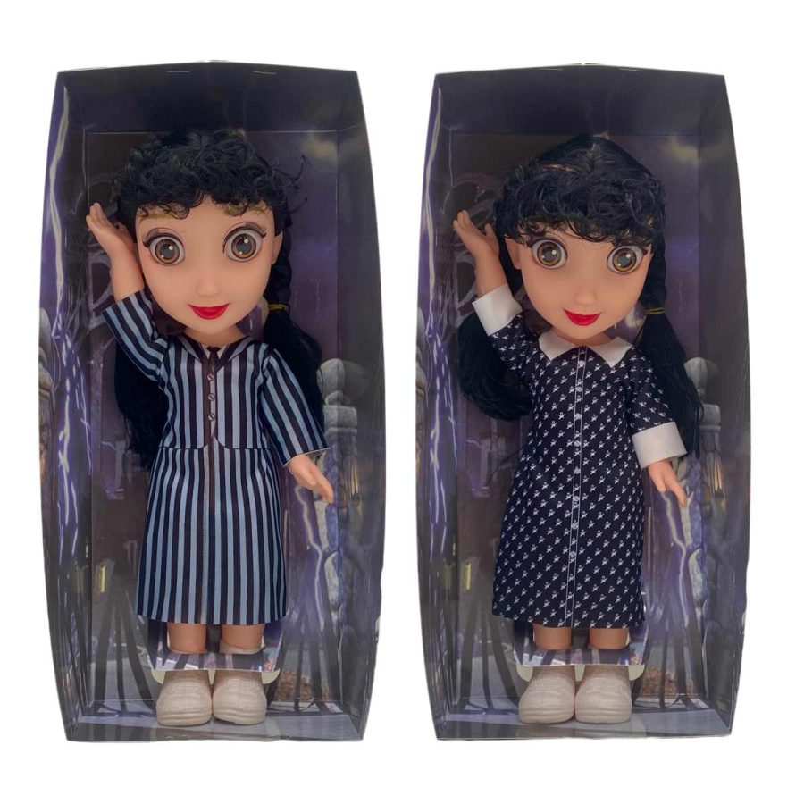 Wednesday je ovih dana definitivno vrlo popularna, a naša velika lutka oduševiće svaku devojčicu. U pitanju je model koji dolazi u kutiji prikazanoj na slikama, što je idealno ako kupujete poklon ili ste kolekcionar. Pritisko na dugme na leđima Sreda peva. Baterija dolazi već ubačena. Inače da napomenemo, lutka je dužine čak 34 cm, što je definitivno jedna od najvećih na našem tržištu. Namenjeno deci uzrasta 3+ godina.