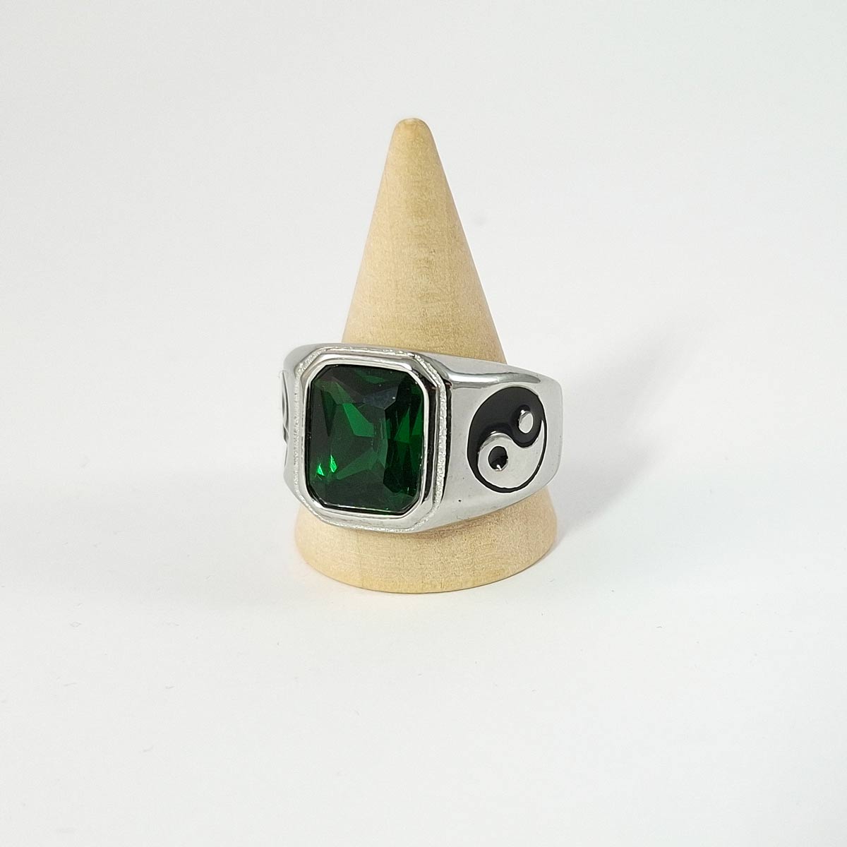 Unikatni prsten sa kamenom u zelenoj boji i Yin Yang simbolom sa obe strane. Veoma zanimljiv model, u ponudi imamo četiri boja prikazanih na poslednjoj slici. Dostupan je u veličinama prikazanim na sajtu, verovatno nećemo dobijati nove.